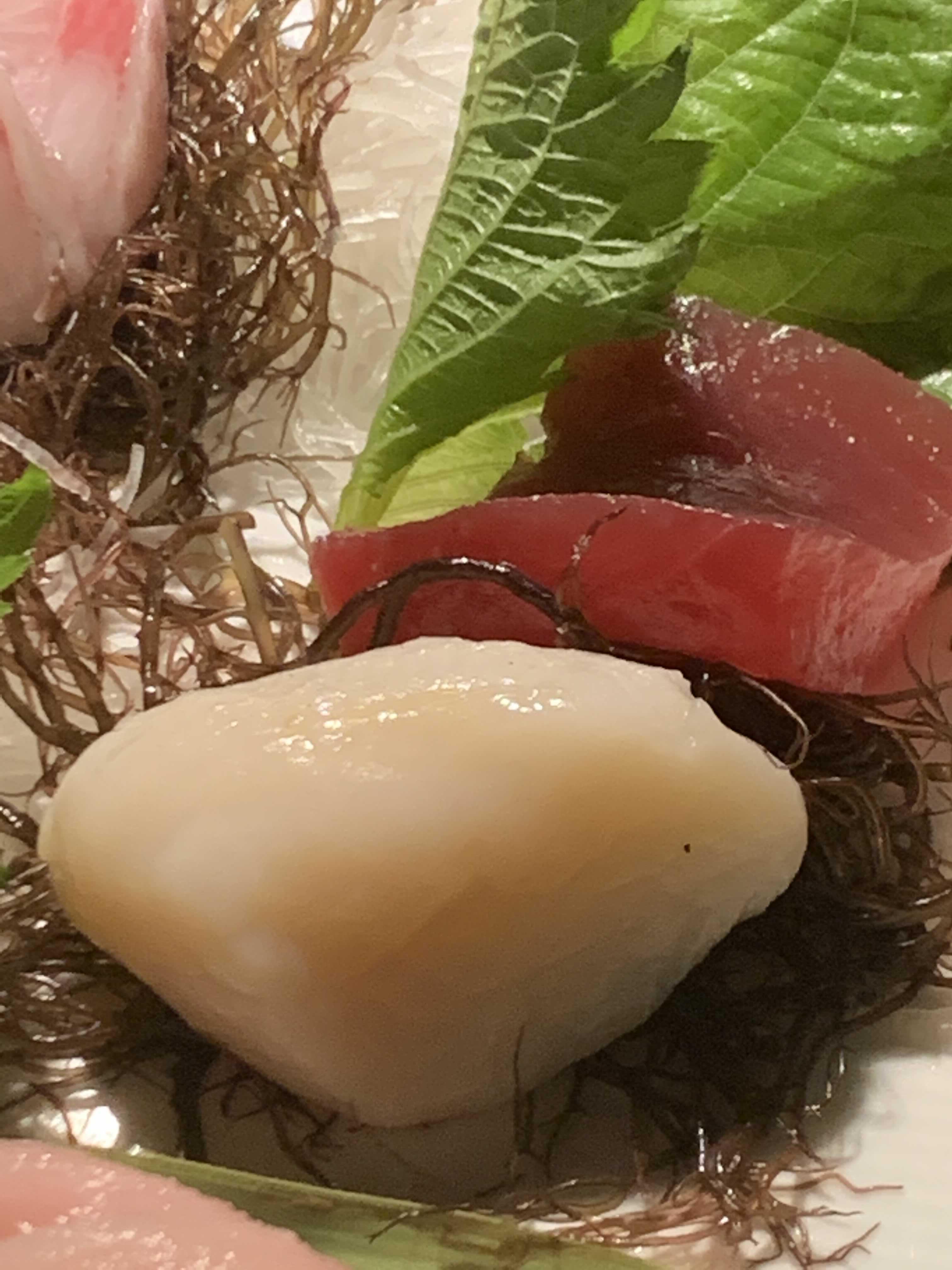 왼쪽은 생관자, 오른쪽은 겉면만 살짝 익힌 관자인데 이렇게 관자가 달달하고 부드러웠나 싶은 맛이었어요.